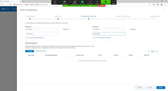 配置网关,Discovery IP,及存储网络地,存储网络地址当使用4端口时配置2个IP,使用8端口时配置6个IP地址