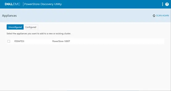 1.将笔记本网卡与PowerStore存储两个管理口连接到同一交换机,打开PowerStore Discovery Utility软件,或直接用浏览器打开https://169.254.0.10,点击“Scan Appliances”按钮