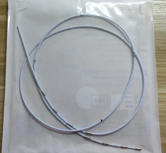 然后医生用的是三个鞘组,就是在我身上连续开了三个口直通静脉,后面我看到这个伤口就像被金刚狼挠过一样。医生用了三条导管,两条用于电生理诊断,一条用于消融,这三条导管是整个手术最贵的部分,加起来就要近2万。而我所有费用加起来也就2万7,可见美国佬多会赚钱,导管都是进口的,由美国圣犹达公司生产。