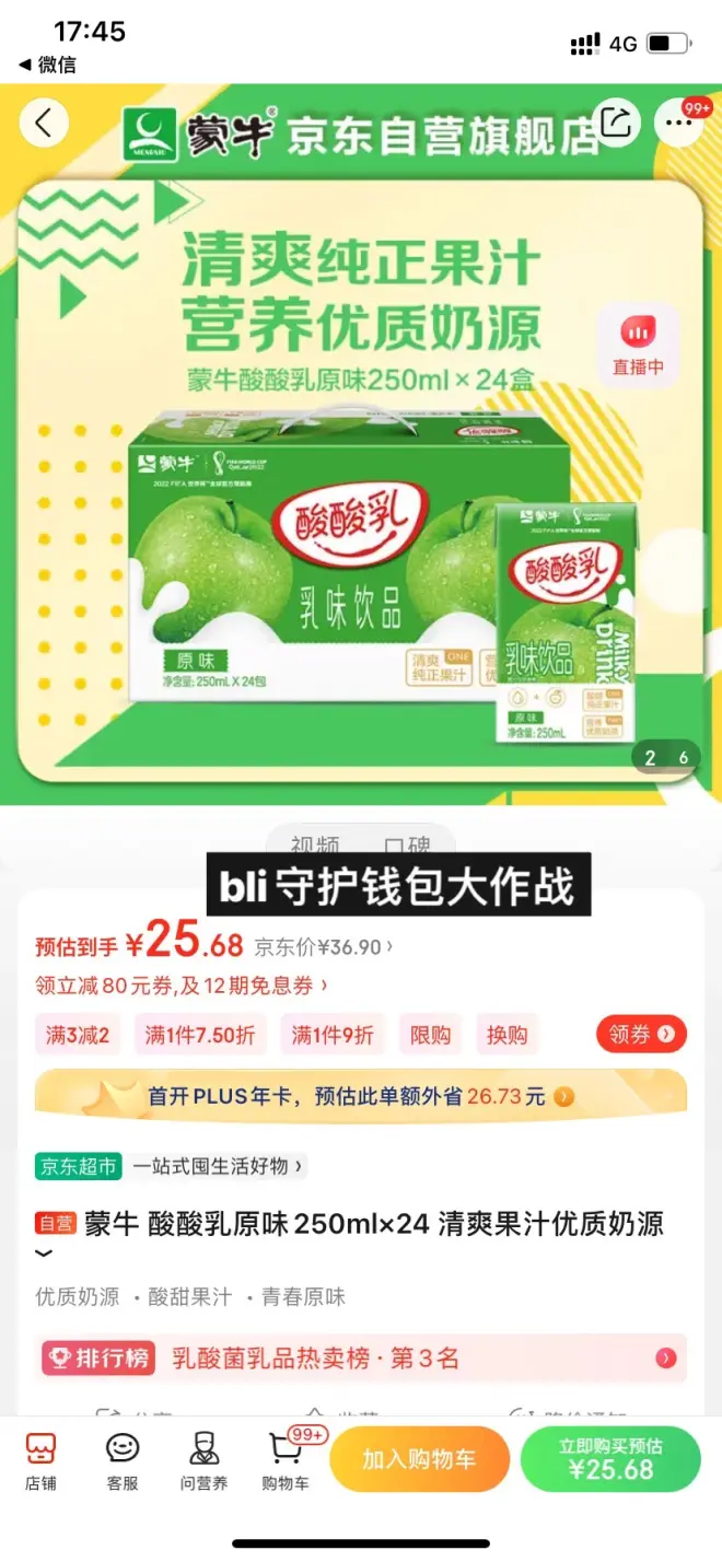 【32.2】拍3,叠页面199减30,到手96.6,折1.34/盒