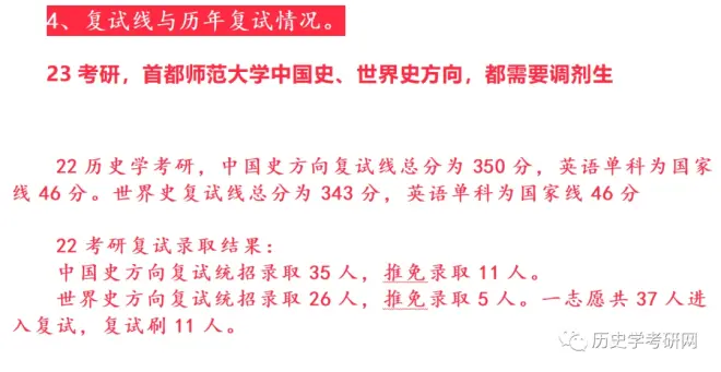 23考研,首都师范大学中国史、世界史方向,都需要调剂生,一志愿考生成绩普遍偏低。优秀考生可以重点考虑该校。