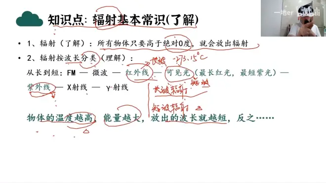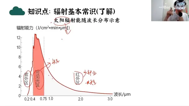 - 太阳温度高,能量大,放出的辐射多为短波辐射(可见光)