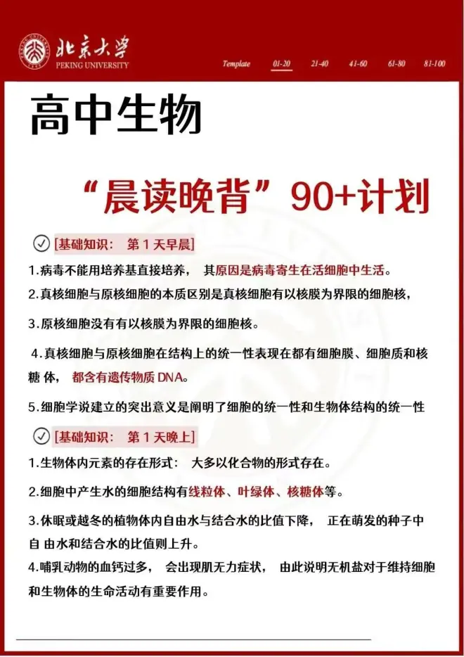 早上八点和晚上八点是一天中最清醒的时候,也是非常有利于高中党背诵的时候,我为大家准备了高中生物《晨读晚背90+计划》,希望能帮助到正为高中生物苦恼的高中党们,加油!