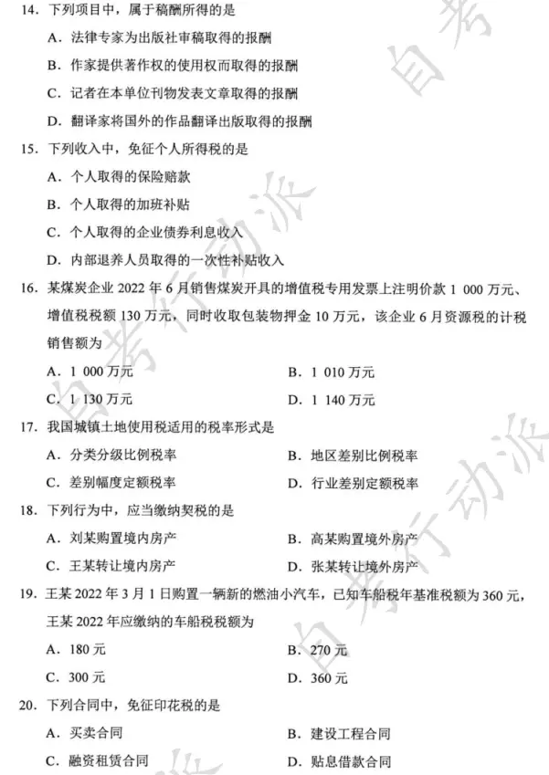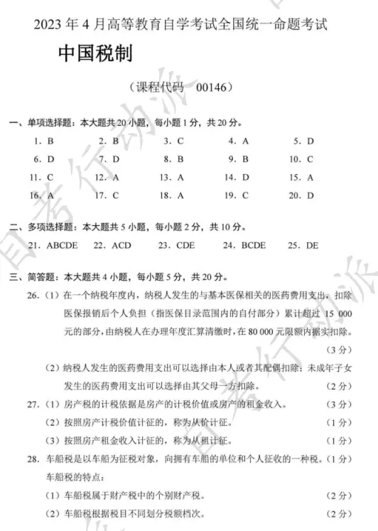 2023年4月自考00146中国税制试题及答案的评论 (共