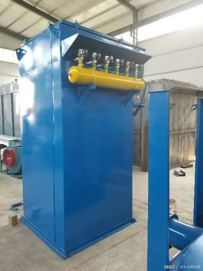 清灰方式为脉冲喷吹清灰,毡制的滤袋常采用脉冲喷吹清灰,相应滤袋为上部开口下部封闭的滤袋,含尘气体通过滤袋时粉尘被阻留于滤袋外表面上,利用压缩空气反吹,压缩空气的脉冲产生冲击波,使滤袋振动,积附在滤袋上的颗粒层脱落。脉冲清灰袋式除尘器处理风量大、除尘效率高,由于其脉冲喷吹强度和频率可进行调节,清灰时气流速度较快,清灰效果好其清灰机构没有运动部件,滤袋不受机械力作用,损伤较小,滤袋使用期长。
