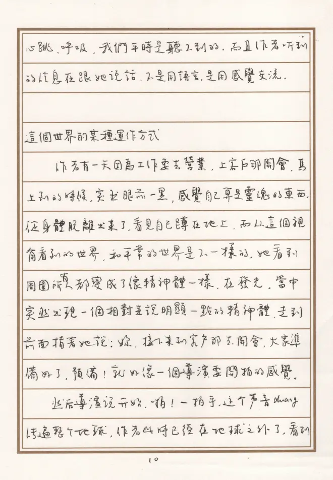 明白了小为平时的快乐可能是从哪里来的。也明白了小为的自我从哪里来,明白了小为脑子里为何会出现这些关于写自己的字的感觉,明白小为为何语言能力不强,似乎小为一直在发挥着很多右脑的功能,这或许也是小为不那么在意钱财、不那么在意社会意义上的成功,不那么在意别人的眼光,有自己小世界的原因。