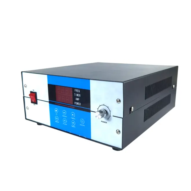 超声波清洗机电源发生器采用国际先进的单片机和自激式电路,采用控制器一带一或者一带多台等形式,一台超声波清洗发生器驱动一台清洗设备或者多台清洗设备,不会出现信号互相干扰,以及频率不谐振现象。超声波清洗发生器配置了定时开关,清洗时间可自行设定。
