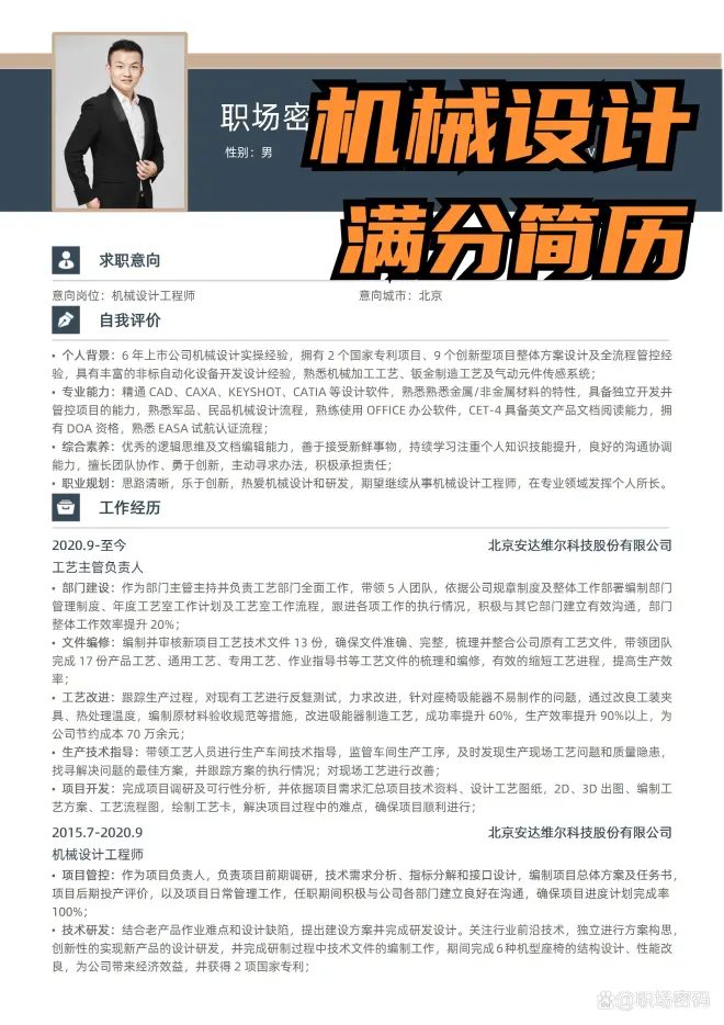 在机械设计岗位的简历中,您应该展现以下专业技能和综合素质: