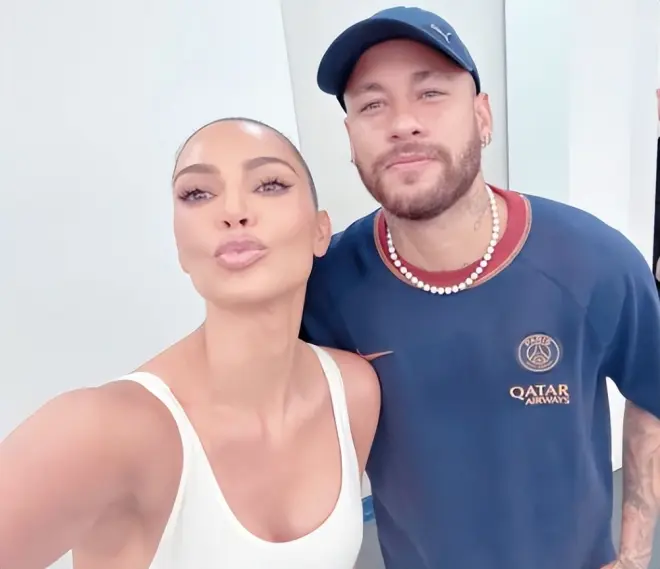 露香肩嘟香肠嘴,金卡戴珊内马尔罕见合影!42岁身材傲人百亿身家