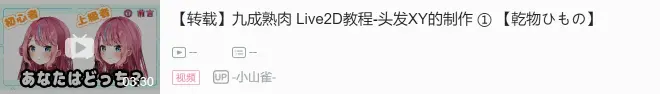 我最开始学习Live2D的制作是通过了8w老师的这个视频学习的。尽管这个视频可能讲的并不是那么精细,但是可以让人快速的熟悉Live2D模型的基本、大概的制作流程。对于零基础的人来说我认为是我看到过的最快捷,最清楚的入门教程了。