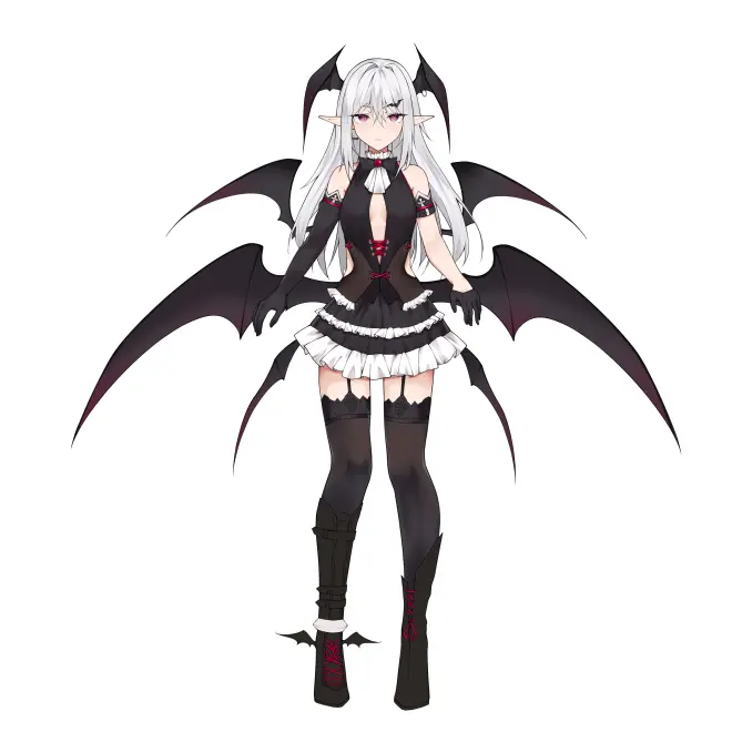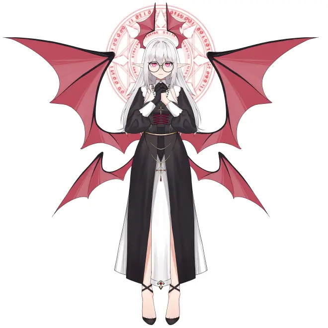 头后生双翼。后背长有四翼但是平常只会露出较为宽大的一对主翼,两片较小的副翼只会在生气时或情绪激动时展开,届时翼膜与虹膜也会因为充血而变红。平日里所有的蝠翼都可以隐藏起来。