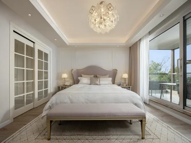 曲调相和,动静相谐,古典乐章之美在空间留下了诗意缱绻的注脚。主卧空间延续了珍珠白的优雅主调,而艺术挂画漫溢而出的独特意境,源于居者的私属品位,卓然不凡。轩阔衣帽间,将时尚叙事与当代生活紧密联结起来,展演奢华无界的气度。