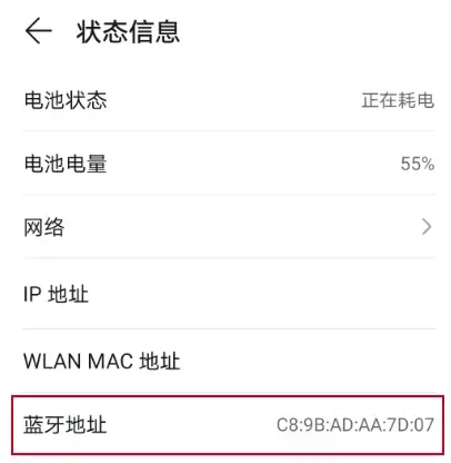 可以在手机的系统信息里查看手机的蓝牙地址: