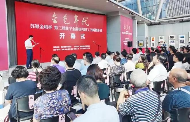8月24日,由政协南京市委员会指导,南京金融发展促进会联合苏银金融租赁股份有限公司主办的“金色年代——‘苏银金租杯’第三届驻宁金融机构职工书画摄影展”在江苏省现代美术馆开幕。著名书法家、第十二、十三届全国政协委员徐利明为展览题写展名,南京市政协副主席李奇出席开幕式并致辞。李奇、翁国玖、陈刚泰、胡昇荣、步国旬为展览揭幕。开幕式由江苏省金融书法家协会主席、南京金融发展促进会副秘书长朱敏主持。