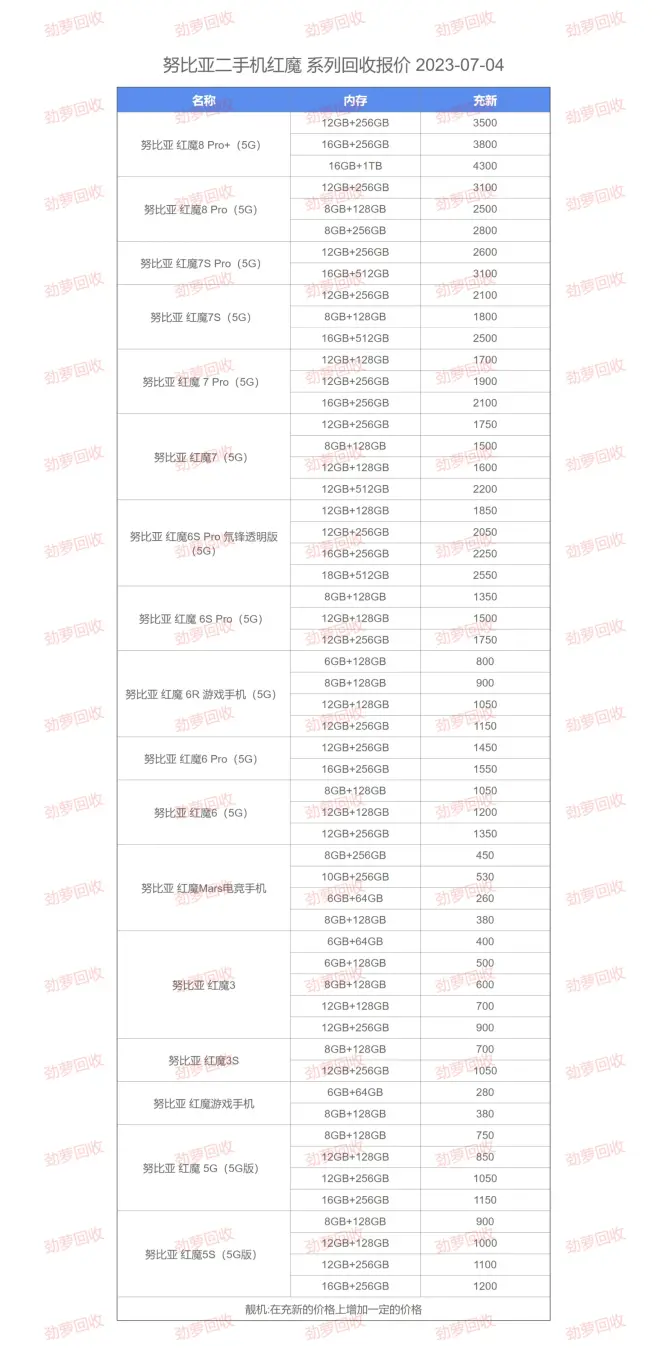 7月4日努比亚二手机红魔系列回收报价单的评论 (共