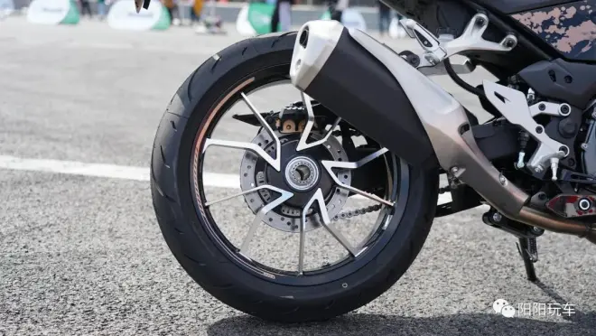 轮胎方面为玛吉斯的高性能热熔胎,国人喜爱的单摇臂也一同配备上了,可惜的是与赛450一样被排气管遮住了一半。
