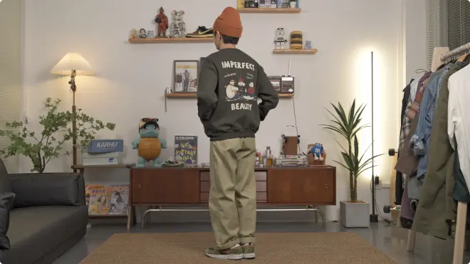 (这件卫衣太太太太帅了!!!! 特别是后面那个篝火拔印图案 很有质感 搭配上老式螺纹和领口 真的一整个复古味道拿捏住 但是!版型我穿xs会合身 走复古味其实都这样 大家如果想要宽松 可以直接拍大一个码数即可)