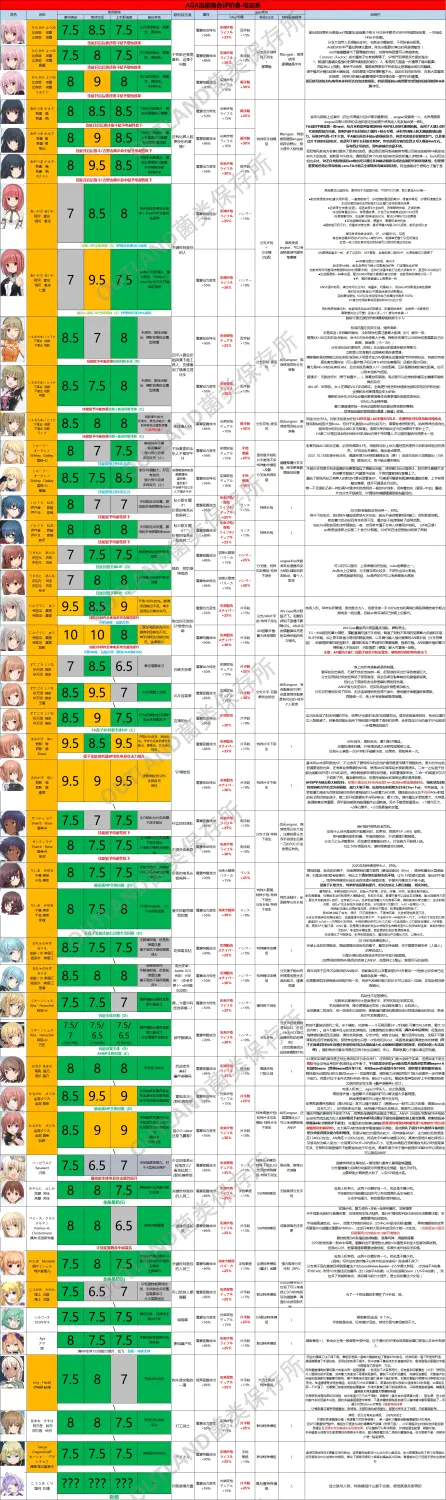 Alice Gear Aegis/AGA/机战少女Alice/机甲爱丽丝 五周年全员评价表2023.03.04