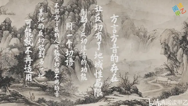 方言方音的存在,让反切有了地域性局限,削弱了反切注音的功能。同一个切语,不同方言区的人可能会切出不同的音,某地的反切放到另一地可能就不再适用。这个地域性问题,就像反切的时代性问题一样,由于汉字不能表示固定同一的读音,字音会因时因地变化,所以时过境迁,就算正确使用了反切原理也拼不出准确的读音。