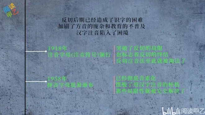 反切后期已经造成了识字的困难,加剧了方音的庞杂和教育的不普及,汉字注音陷入了困境[2]。1918年,注音字母(注音符号)颁行,突破了反切的局限,也标志着反切的终结,反切注音法至此就被淘汰了。而1958年批准的拼音字母是更科学的注音方法,已经彻底音素化,摆脱了用汉字注音的桎梏,那些局限性就被完全解决了[1]42。(阅读甲乙|2023-02)