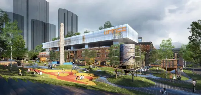 利用场地中原有的附加体量、排架以及烟囱,通过改造更新形成特殊的活力点,与相应的场地一起共同打造成为可以进行各种活动的城市广场、时尚秀场和后工业公园。