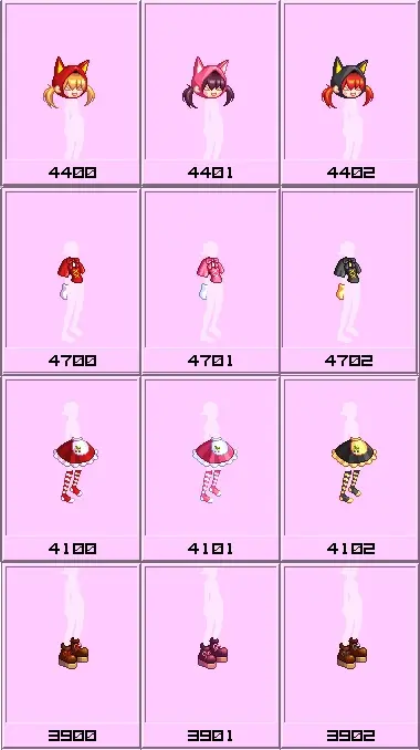 女法比较推荐裙子和鞋子,鞋子是少见的松糕鞋,裙子自带横条纹袜,选粉色的话红色可以靠染色达成效果。