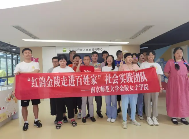 7月25日,南京师范大学金陵女子学院“红韵金陵走进百姓家”社会实践团队前往睿泽障碍人士服务中心进行暑期实践。