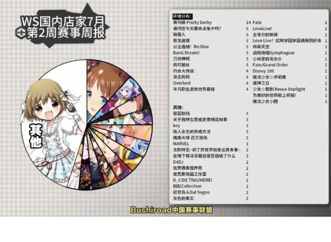 各位ws玩家好,我是画船,欢迎来到国内ws赛事周报。以下为本期周报的饼图: