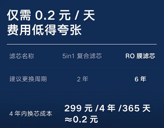 相比起市面上大多数需要每隔一至两年就需要频繁更换滤芯的净水器,云米·泉先AI净水器Super2 Max由于搭载了云米独家研发的超长效滤芯技术,从而实现了核心RO滤芯6年的换芯周期,平均下来每天使用成本仅为0.2元,这甚至比传统开水壶烧水喝都要低,就更别提购买桶装水了。