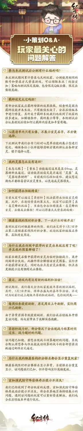 小伙伴们也积极向玄宝反馈了自己的问题和建议,玄宝都一一记下了。今天,专门请到了游戏的小策划,来对大家最关心的问题做出回应——