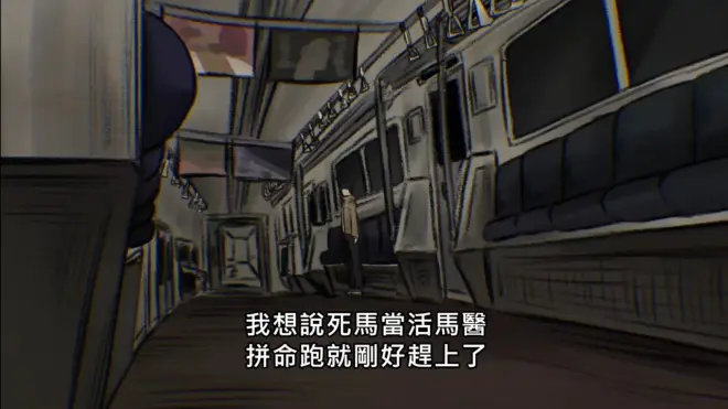 故事的开头就是地铁跑酷(确信),男主以镜像和平移进入地铁站,在“末班车即将进站,请不要在地铁即将关门时冲上车很危险”的广播声中上了车,车上很空,发消息问朋友上车了吗,结果收到了竹下发来的消息,问他昨天想要谈论的事情。源濑氏佐田,男主和朋友在讨论去喝酒,然后竹下出现说想要有只能和男主商量的事情,今晚行不行,男主说电话里也行。朋友问要不要带上一起,男主说算了吧,然后一回头竹下消失在人群中(物理)。于是男主敷衍回复果咩明天可以吗,对方光速回复已经带胶布了非常抱歉让你担心了。男主发现车压根没停过,而且指示牌也没亮。这时朋友打电话,见四下无人他就接,朋友说赶不上车了能不能到你家住一晚,不过在说的时候正好赶上了,在第一车厢,朋友赶紧挂电话,因为被车厢里的人瞪了。男主很疑惑,自己都是勉强赶上,朋友不可能上车。他打算去看一眼,但是发现竹下也在车里,发了条消息问后,他通过车窗看出去,发现另一辆列车开了过来,朋友坐在那个车上,指示牌写着最终电车,等男主打电话时发现没信号了。回头一看竹下不见了,列车灯关了,广播说列车即将到达终点。这时竹下在背后曰,让它全部结束就解脱了,为什么不早点这样做呢?所以你才会搭上末班车啊!门打开了,门外是紫色阴间。哦吸霾。