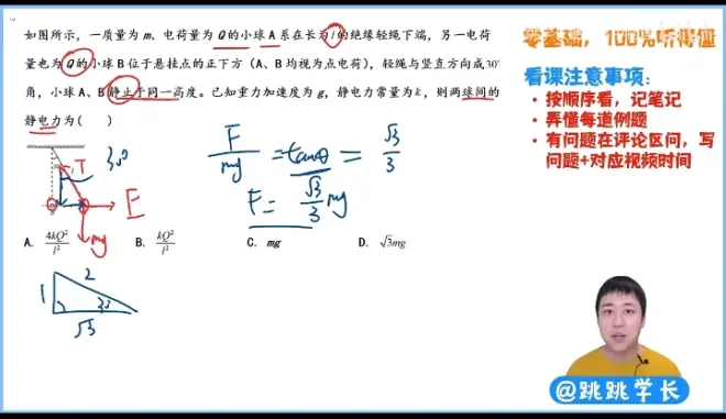 【高中物理必修3系统课】4.库仑力平衡问题|一场高一上的力学试炼!的评论 (共