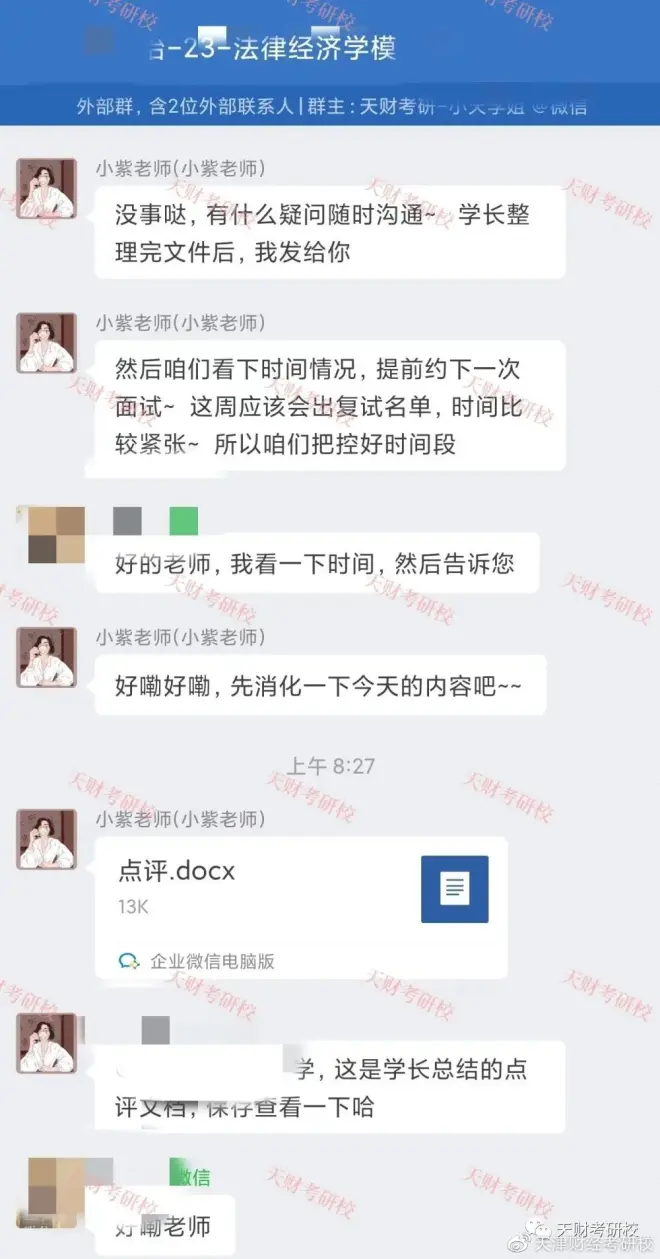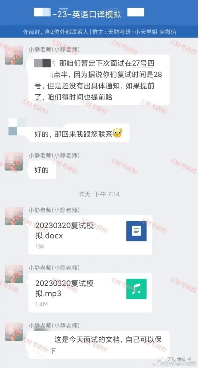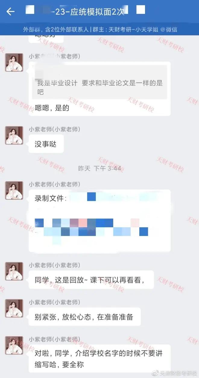 深耕天财考研辅导多年的天财考研校,为你带来最及时的2023年线上模拟复试课程! 天财复试高分学长学姐带你模拟真实复试流程,真实的还原面试场景,实战演练,纠正面试暴露出的问题,让你面试不慌,超常发挥。模拟面试全程采用腾讯会议软件进行。全程录屏,可查看回放。每场模拟面试20-30分钟,高度还原2022年网络复试情形。复试模拟材料极度贴合天财风格,评判标准与天财老师保持高度一致,试后你能收获独一无二、一针见血的反馈与建议。具体服务请继续往下看: