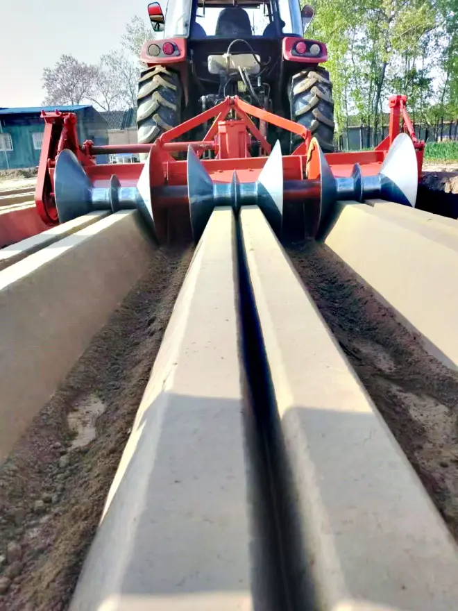 苗床起垄机由旋耕机配套起垄镇压器一同作业,犁头前侧开沟四轮拖拉机后输出驱动旋耕机进行破土碎土作业,后侧集土板归土成垄,成型镇压器镇压成型。旋耕机大小可定制,起垄盘直径大小可定制,起垄高度垄面宽度可调。适应于各种需要起垄种植的蔬菜瓜果等,作业效率高,垄形规整、土垄结实不易塌陷。