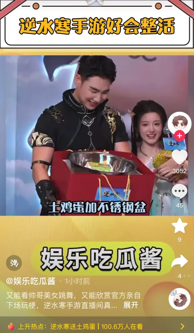 水果蹲小游戏结束后要给获胜者颁奖,本以为会是什么精美礼品,结果谁能想到获奖礼物居然是土鸡蛋和不锈钢盆,《逆水寒》手游你要不要这么接地气?不过有一说一,这奖品还怪实在的嘞!