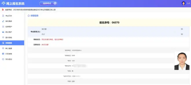 注册账号并登录大同人事考试报名系统后,按照左侧菜单顺序依次点击完成即可。首先完成个人报名表的填写: