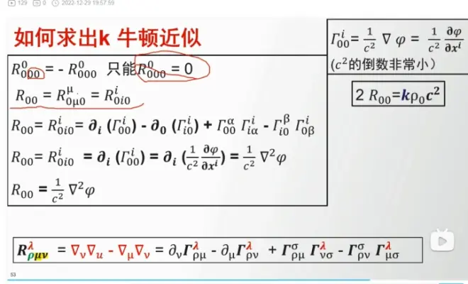 下面四张截图来源于,爱因斯坦场方程系数确定—牛顿近似_哔哩哔哩_bilibili。