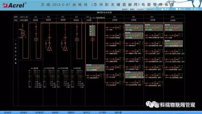 苏地2013-G-87南地块(苏州阳光城翡丽湾)电能管理系统包含2个变电所,本项目针对变电所配电系统进行电能管理;对变电所的低压配电回路进行远程实时监控和电能管理。