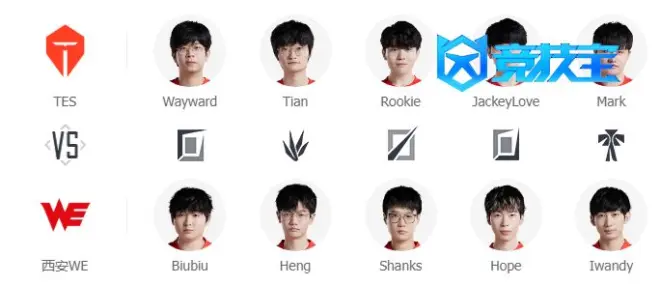 选手方面,TES在常规赛最后一场换上了wayword替代qingtian并击败FPX终止了连败,从TES公布的首发阵容来看,季后赛会继续使用wayword作为首发上单,TES在本场比赛的首发阵容为:上单wayword、打野tian、中单rookie、下路JackeyLove、辅助mark。WE本赛季阵容更加稳定从未出现过换人的情况,WE在本场比赛的首发阵容为:上单biubiu、打野heng、中单shanks、下路hope、辅助iwandy。整体来看,TES拥有大量明星选手,中下野三人曾经都拿到过世界赛冠军,而WE的选手则鲜有成绩,名气最大的是下路hope+iwandy这对韩服顶分组合。
