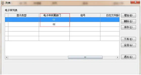 ③ 全选商品点击下传---添加电子秤时选择对应的部门号。此时会将各部门号的商品下传到指定的电子秤中,实现不同的电子秤管理不同类别的商品;