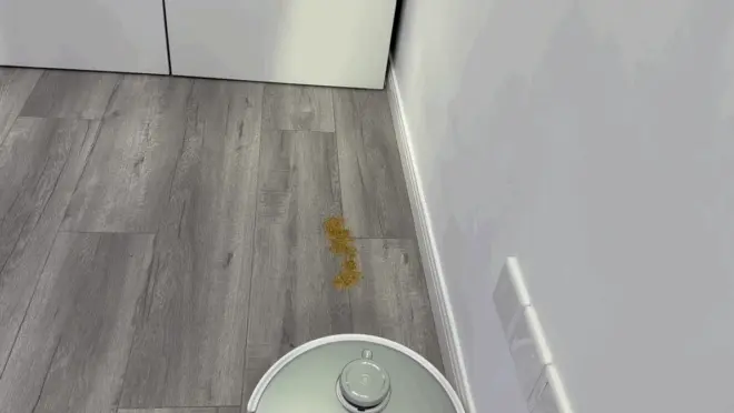 当面对小面积的湿垃圾,比如一小块番茄酱不小心掉到地上,科沃斯 T20 PRO 和石头 G20 都能够轻松应对,把地面刷洗得干干净净。然而,当遇到大面积的湿垃圾时,这两款扫地机器人可能就会遇到一些挑战。