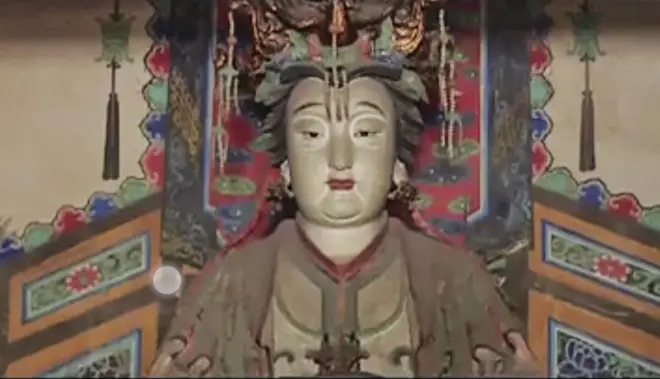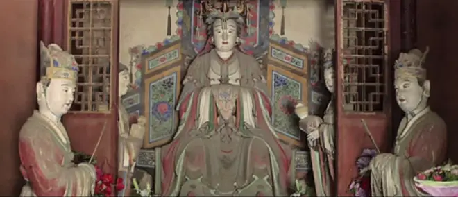 娘娘殿内塑关夫人彩像,关夫人头戴凤冠,身着霞帔,体态丰满,端庄慈祥,颇含唐塑遗风。