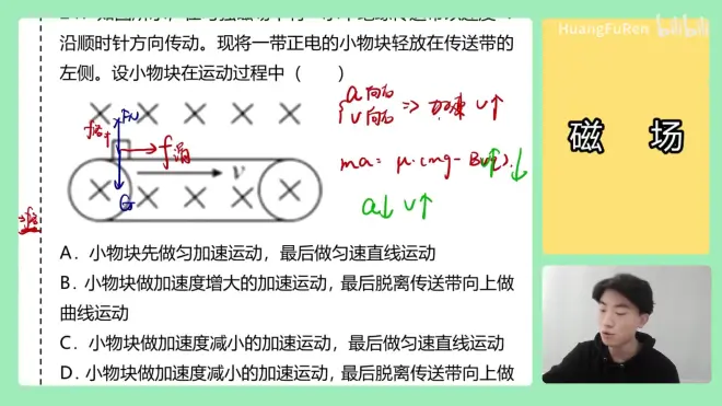 撤掉磁场:没有摩擦力,有摩擦力就会有支持力,有支持力就会飞出去
