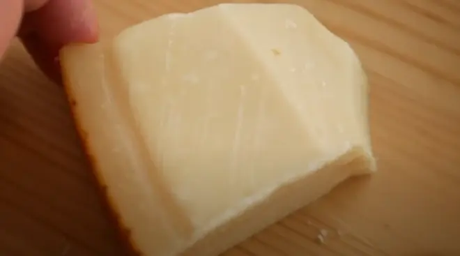 这种看起来很别致的小薄片其实只有一种配料,那就是磨碎的帕尔马干酪。在磨干酪的时候,建议只用内部,而不是外皮附近较硬的部分。这可能与奶酪中的水分与脂肪分离有关。