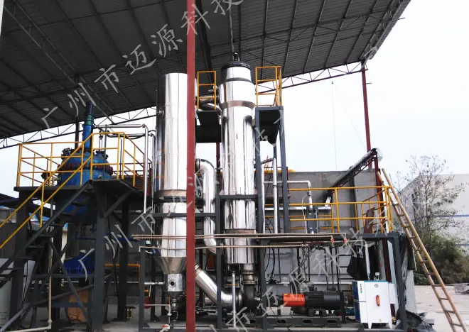 采用三效蒸发技术,三效蒸发可以将有机溶剂、水、盐分直接分离,三效蒸发器运行稳定、高效节能、使用寿命长,经过三效蒸发器之后分离的固体可以进行焚烧处理,利用效率较高,同时减少固废的产生,避免二次污染,符合清洁生产的要求。