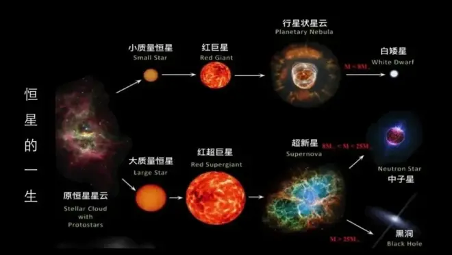 这就要说到恒星的最终演化结果了,星空中时时刻刻都有数不清的恒星消失,它们在结束主序星阶段后要么成为白矮星,要么成为中子星,要么成为黑洞。但最终都会成为黑洞,或者被黑洞吞噬。我们可能认为一颗恒星结束主序星后就成为了死星,但实际上并非如此,每一颗消亡的恒星在变成死星前都会留下将近一半的气体尘埃在空间中,这些气体尘埃是形成下一代恒星的原材料。
