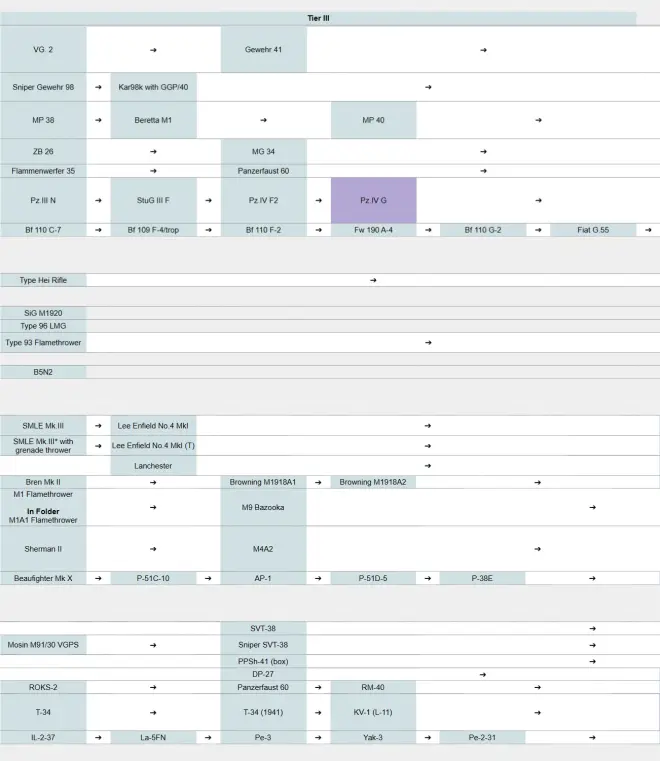 你好,指挥官!我们最近和你分享了我们有关从军的科技树(Progression)会如何变化的方案。今天我们准备向你展示一个基于玩家们的建议和反馈的新版科技树方案:我们将科技树等级减少了一半(从之前的10级减少为5级),同时我们引入了科技树武器折叠机制(类似于战雷的折叠载具),这样你就可以只解锁其中的第一个武器,并且不必肝其他的被折叠武器。提升游戏等级将会变得更简单,方便,快捷。