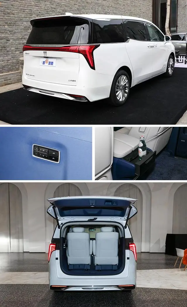 新车定位中大型MPV,车身尺寸方面,长宽高分别为5230/1980/1867毫米,轴距为达到了3130毫米。长度、宽度和轴距都超过了丰田埃尔法,而不到1米9的高度也是为进入地库等封闭场所而考量。丰富的储物空间也是新车的一大亮点,而且连储物格内部都融入了植绒材质,细节上可谓拿捏的相当到位,后备箱能够直接控制第三排座椅,这个设计感觉相当贴心。