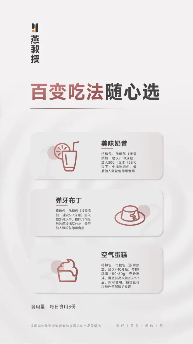 过去十年间,燕教授品牌一直致力于产品研发和改进,为广大消费者提供健康、方便、营养丰富的食品选择。通过技术的不断突破和创新,我们将品牌带入了一个全新的时代,并对旗下产品——燕教授多口味营养简餐进行里全面升级。