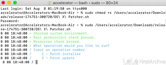 然后输入sudo (注意有空格),然后再次将.sh文件拖进终端,回车。
